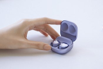 The charging case of the Buds Pro looks mostly identical to the one for Samsung's previous wireless headphones – the . It's made out of glossy plastic on the outside, matte plastic on the inside and features smooth, curved edges. It opens up like a wedding ring case. As for charging, it quick-charges ...